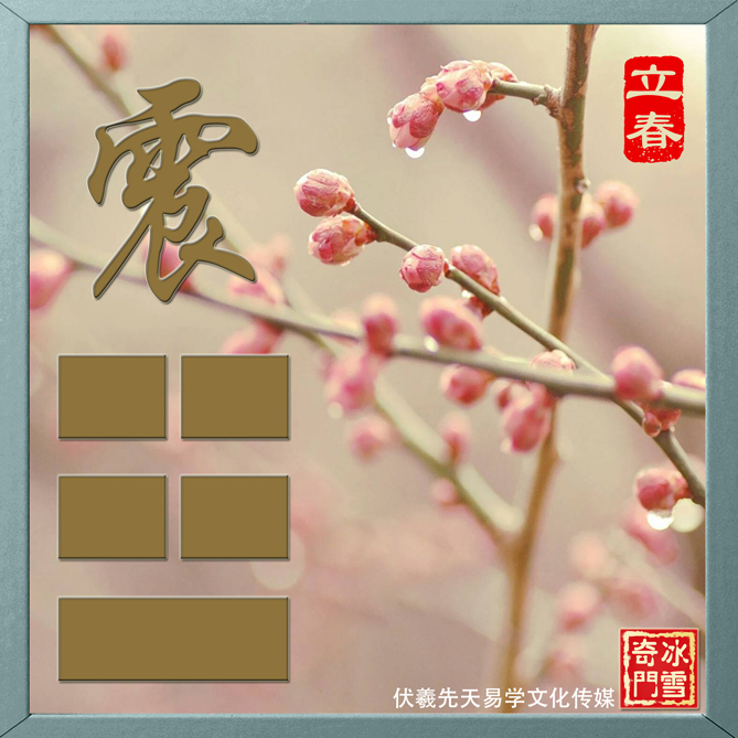 【震卦】:下面是阳爻,中间和上面是阴爻。
