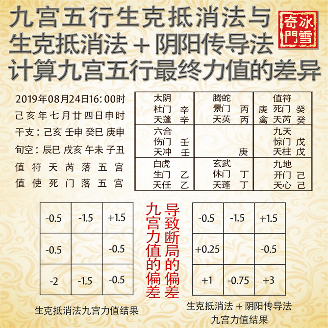 生克抵消至少生克是对的,但计算奇门局力值时只用生克抵消等于工程只做了一半。冰雪从来不认为自己是永远正确的,但冰雪所讲解、传授的一定是经过冰雪的认真学习、深入思考、反复论证而得出的结论。每一套理论都有历史的局限性,阴阳传导也一样,以后肯定会有比【阴阳传导法】更高级别和层次的学术,但就目前而言,阴阳传导是更符合易理和更经得起检验的认知。