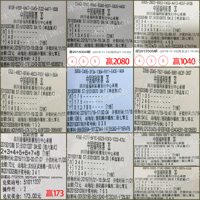 以下是我通过学习后,除周六不测以外,2019年303期至314期的中国福利彩票实践案例,现在分享给各位: