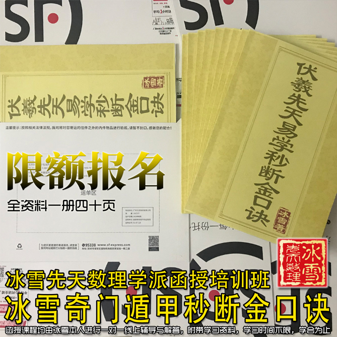 备注:函授培训课程均由冰雪本人提供一对一线上辅导和解答,附带文字纸质资料,一律不发电子版。《冰雪奇门遁甲秒断金口诀》函授培训课程限额报名,额满后当即取消函授课程,以【先天易学冰雪奇门面授培训】形式教学!