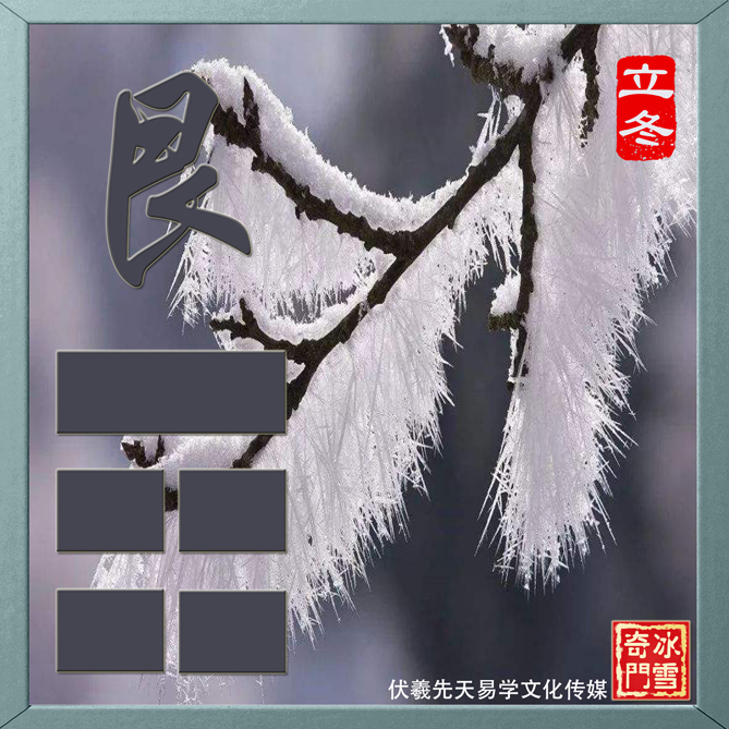 阴爻已经连起来,也是阴气开始占主导,还有一点阳气,对应了6宫的属性节气【立冬】。