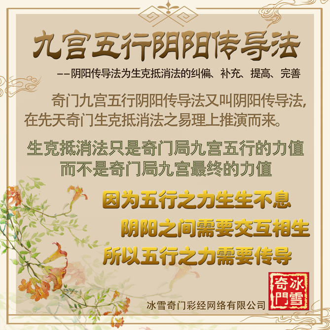 【阴阳传导法】是在先天奇门王氏学派的【生克抵消法】上推演而来,此乃冰雪经过1300多期的测-彩结果印证、检验得出的结论。【生克抵消法】原有的0.5一个单位,通过【阴阳传导法】的运算把每宫力值精准至0.25一个单位,用于奇门测-彩每宫力值精准至0.0001。