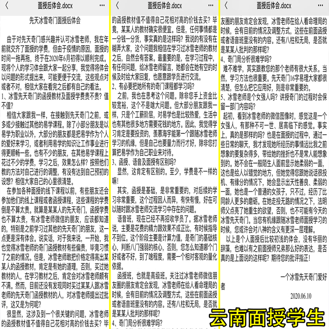 2020年,因为疫情的原因,国家和社会几近停摆,冰雪的教学工作也不能例外。受疫情影响,部分学生的面授时间也只能相应推迟,但冰雪都在年中时安排时间相继给学生补上了教学课程。疫情期间,冰雪正好利用此时段静下心来,潜心研究,笔耕不辍,持续不断的修正和更新奇门遁甲函授培训课程内容,如:《冰雪奇门遁甲经典案例剖析实录》、《冰雪奇门遁甲剖腹产择吉实践应用》、《冰雪奇门遁甲奇门古法六甲孤虚术》、《冰雪奇门遁甲门神星量级划分》,同时着手编著《紫微斗数精义》、《冰雪奇门遁甲精研版高阶段教程》、《冰雪奇门遁甲姓名学从业精修版教程》、《奇门堪舆学之企业家居风水布局》、《奇门遁甲流年流月断法详解》等,将学术成果积集成册,丝毫不曾懈怠。