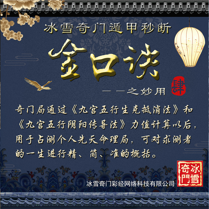 奇门局通过【九宫五行生克抵消法】和【九宫五行阴阳传导法】力值计算以后,【冰雪奇门遁甲秒断金口诀】用于占测个人先天命理局,可对求测者的一生进行精、简、准的概括。