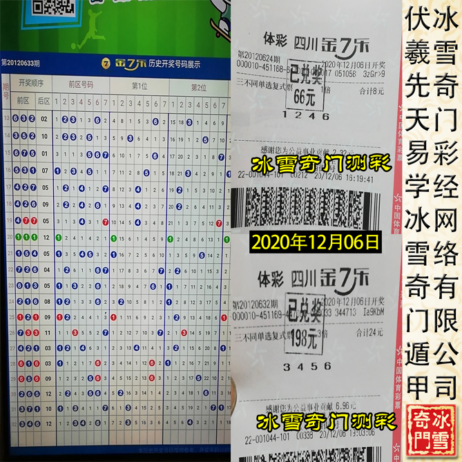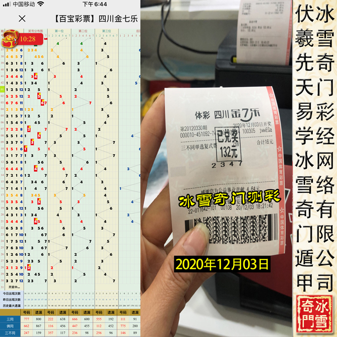 一切不能用于测-彩的奇门遁甲都为伪易学!以下为冰雪奇门遁甲测-彩班学生从2020年12月02日——2020年12月08日连续七天预测四川省体育彩票金七乐的案例,真正实现【稳赚不亏】的状态: